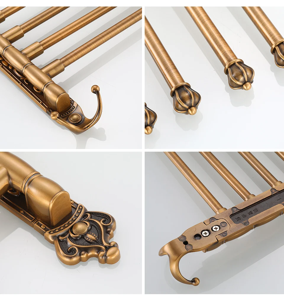 Antique Swivel Towel Hanger Carved Towel Bar Wall Mounted Folding Bathroom Towel Rail Rack - Elegant Bathroom Towel Holder